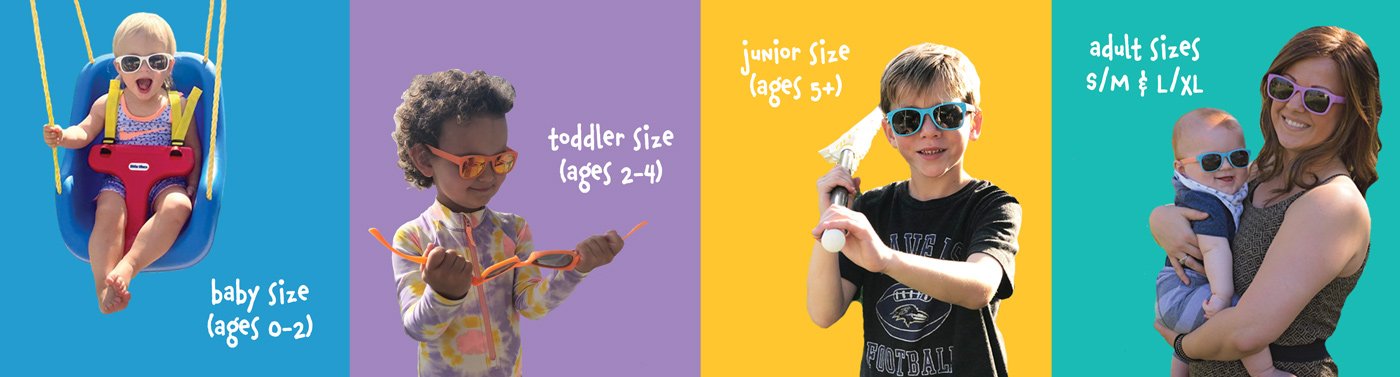 One of the biggest benefits of our flexible material, is that it gives lots of room to grow! Grab a carrying case & strap kit combo to keep your little sunnies safe, and to ensure a better fit on infants or kids growing into larger sizes. Comes with head strap and ear adjuster pieces! For teens and adults, we also have our slip grip ear adjusters which help keep shades and glasses in place if slipping off.