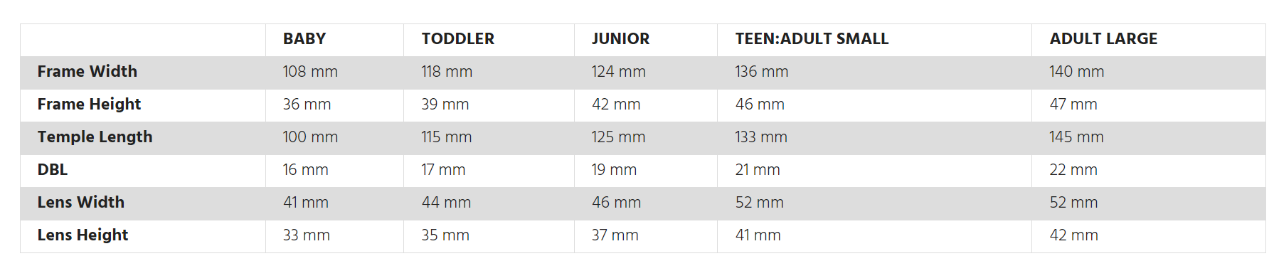 Not sure which size to get? Use our sunglasses size chart as a guide.