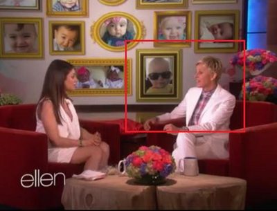 Check out your favorite baby shades on the wall between Ellen and Mila Kunis!
